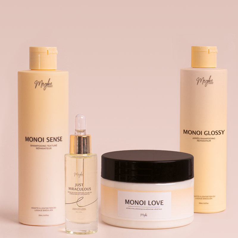 Disfruta del mismo resultado que en tu salón — con la Mascarilla Hair Botox Monoi Love de Maybe Paris.